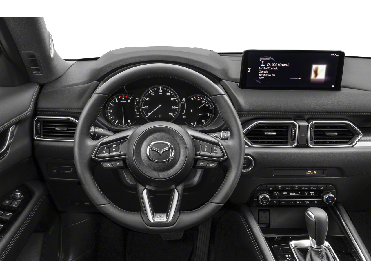 The CX-5's interior is equally impressive, with features like a Heads-Up Display, Memory Seat, and a premium Infotainment System with voice command, Pandora, and SMS text message integration. The leather-wrapped steering wheel and shift knob, along with the heated and ventilated front seats, add a touch of luxury to every drive.